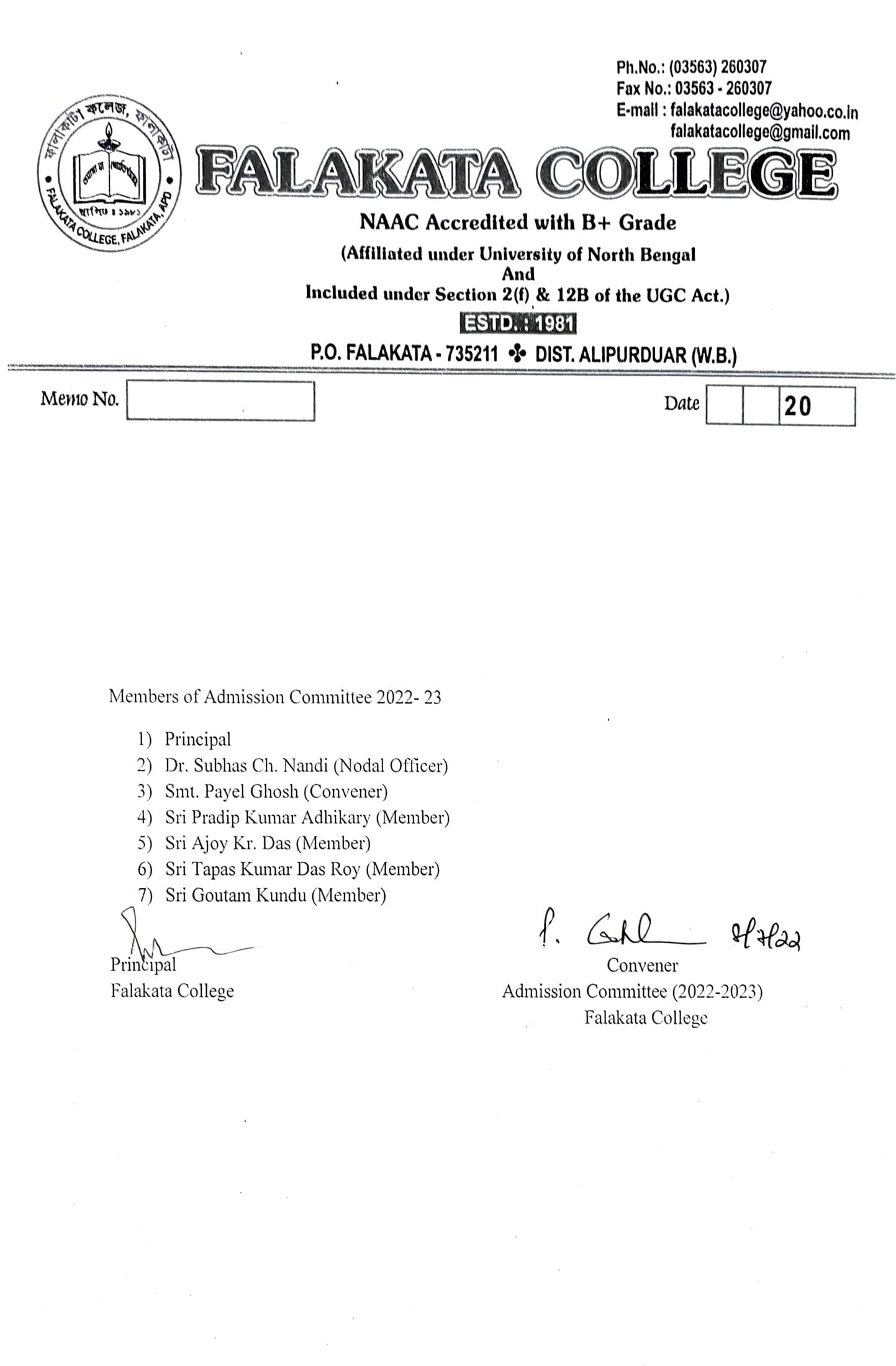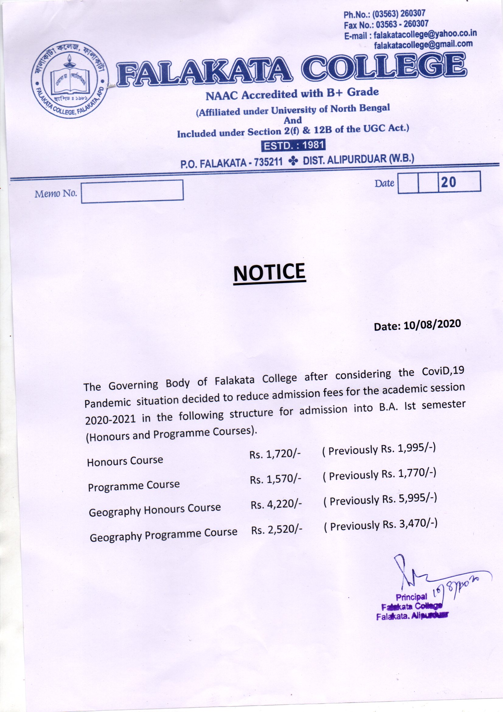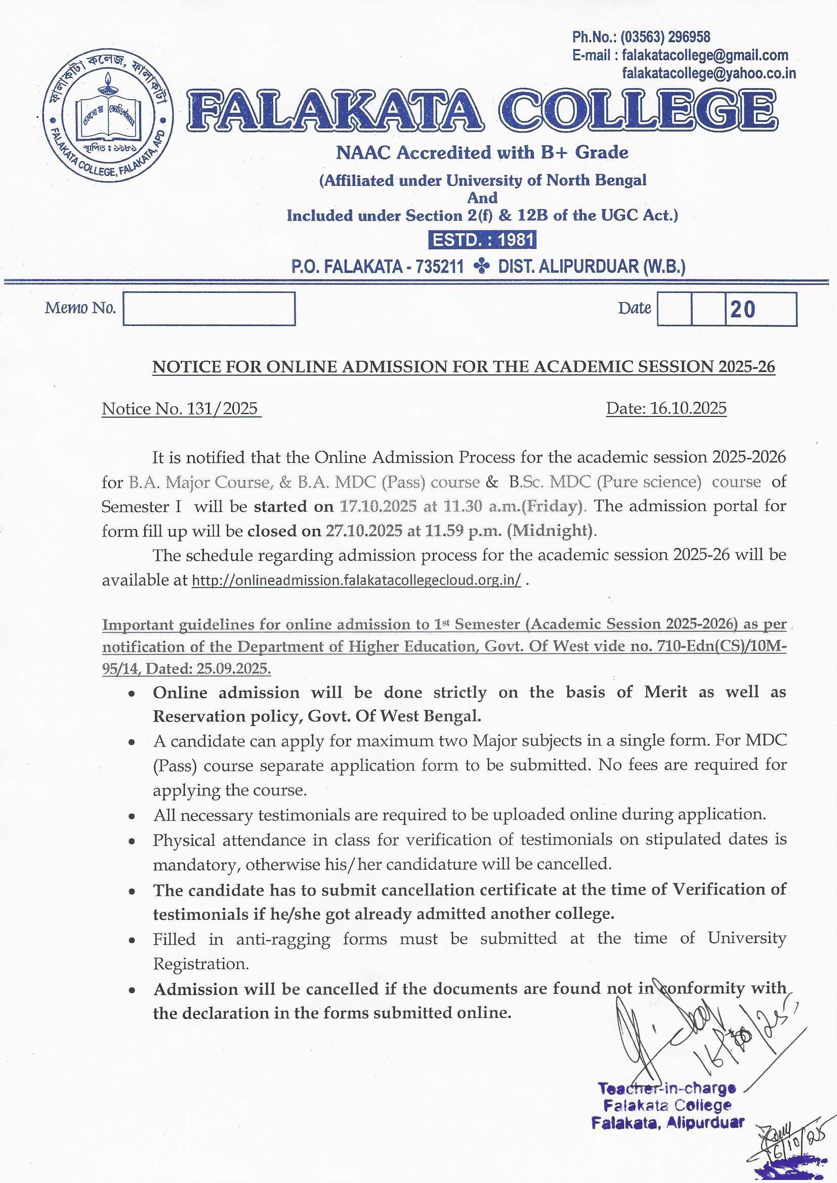 Notice for Admission for the session 2021-22 (Bengali Version).